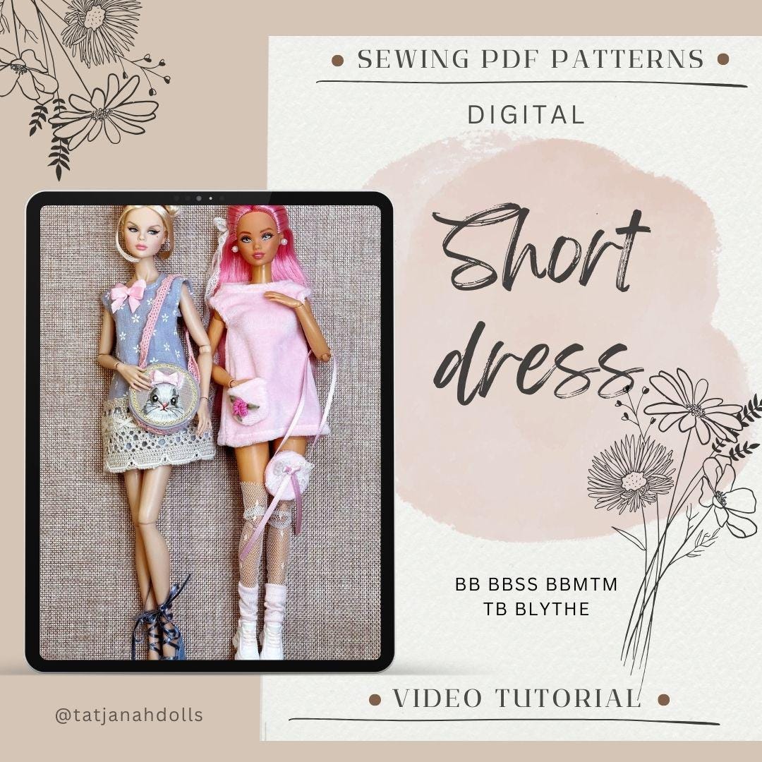 PDF Digital Pattern short dress for BB, Poppy Parker, Tulabelle and Blythe dolls. Video Tutorial.