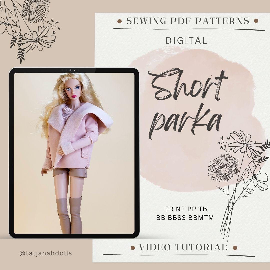 PDF Digital Pattern short parka jacket for BB & Integrity toys dolls. VIDEO tutorial.