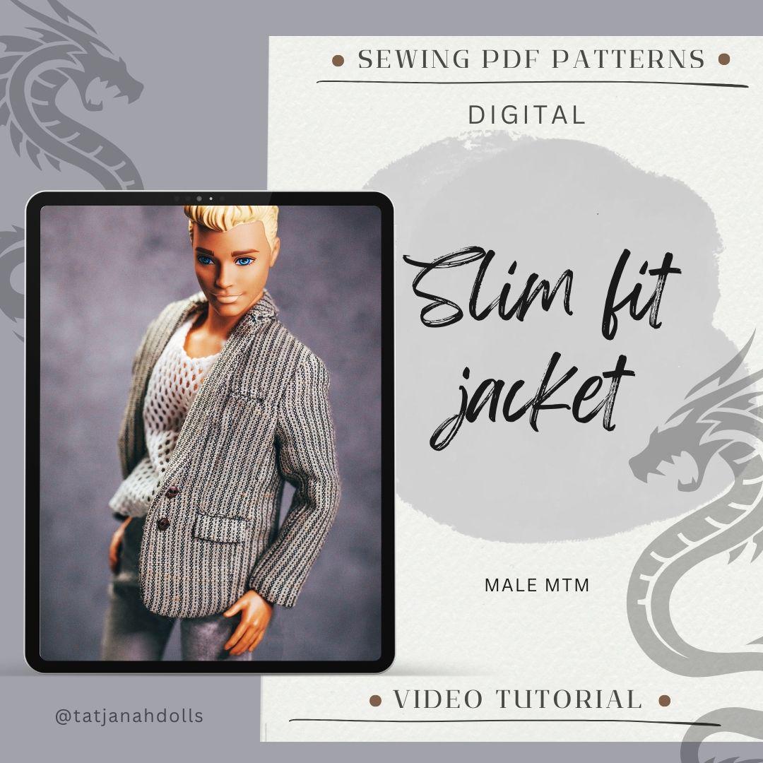 PDF Digital Pattern slim fit jacket coat for 1:6 12“ male MTM fashion doll. Video tutorial.
