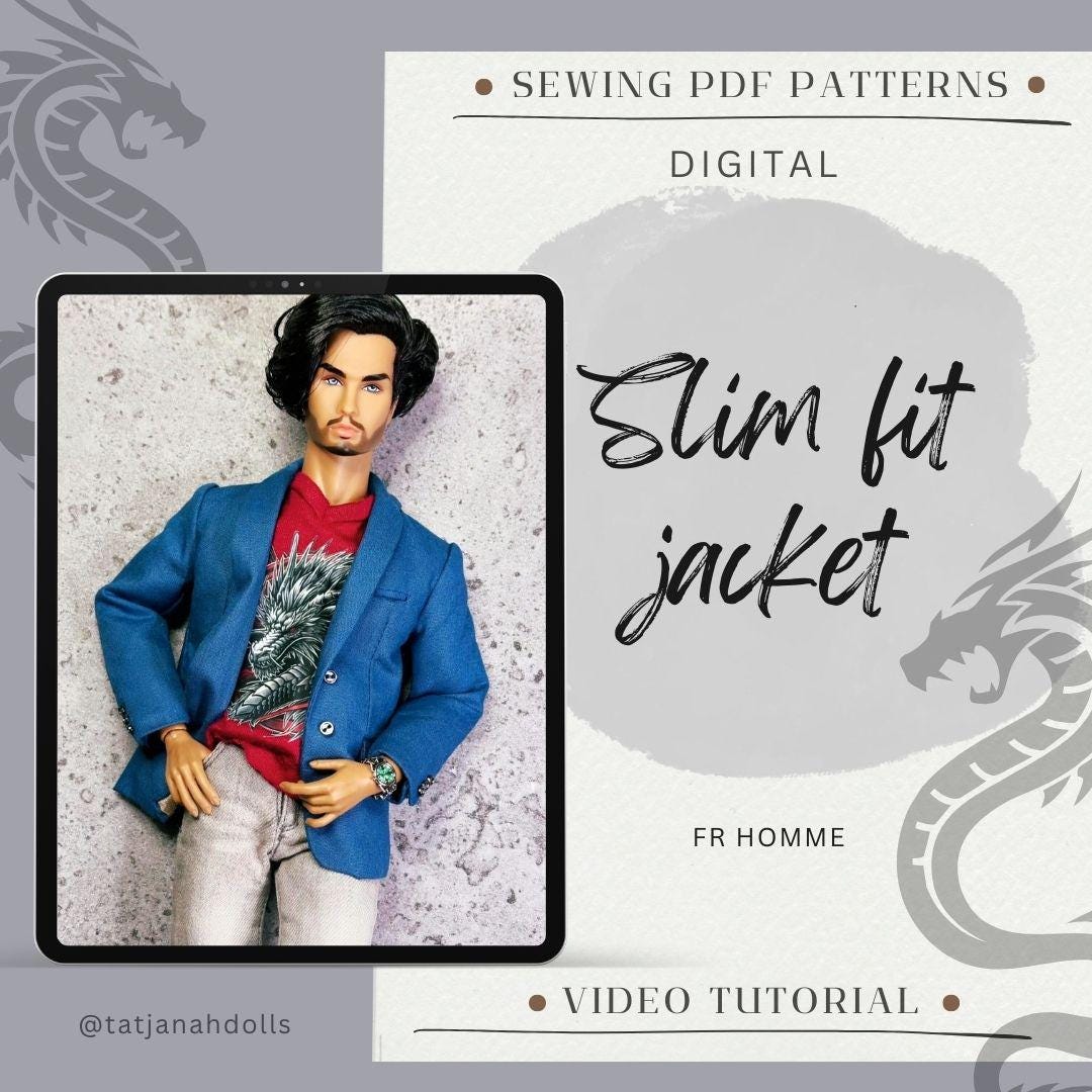 PDF Digital Pattern slim fit jacket coat for male FR HOMME Monarch doll Integrity toys. With realistic finishing the slits.