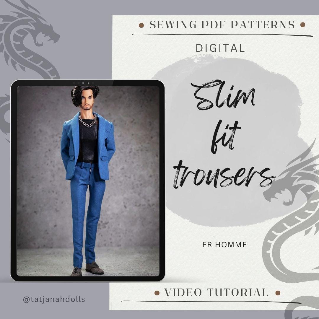 PDF Digital Pattern slim fit trousers +chino pants for male FR HOMME Monarch doll Integrity toys.