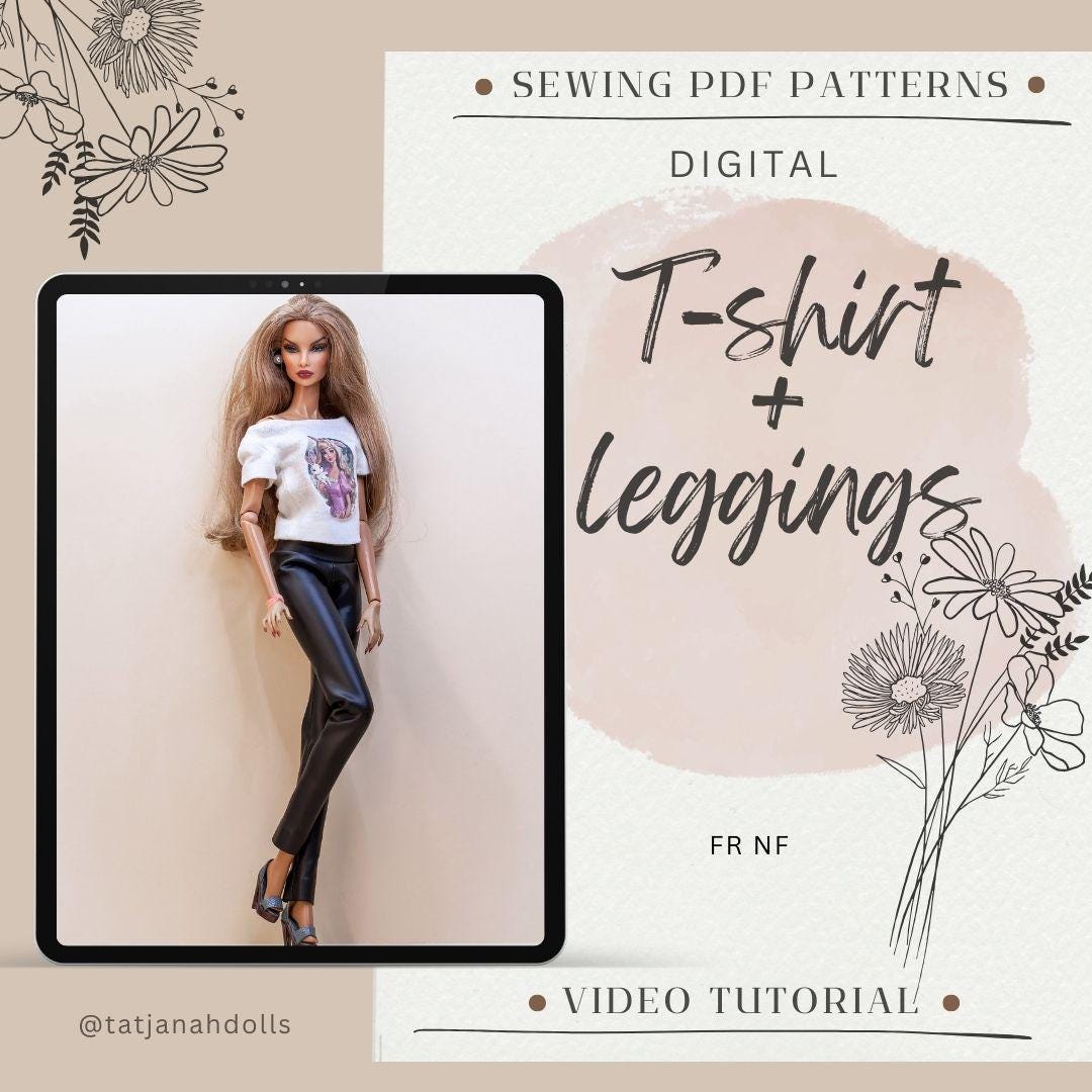 PDF Digital Pattern T-shirt & leggings for Fashion Royalty Nu Face doll Integrity toys. Youtube VIDEO tutorial.