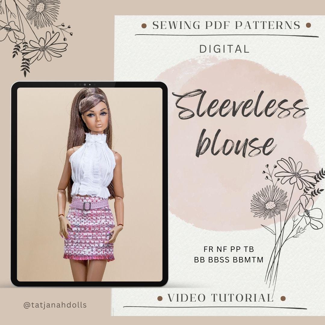 PDF Digital Pattern top blouse for Fashion Royalty Nu Face Integrity toys and BB dolls. Tik Tok VIDEO tutorial.
