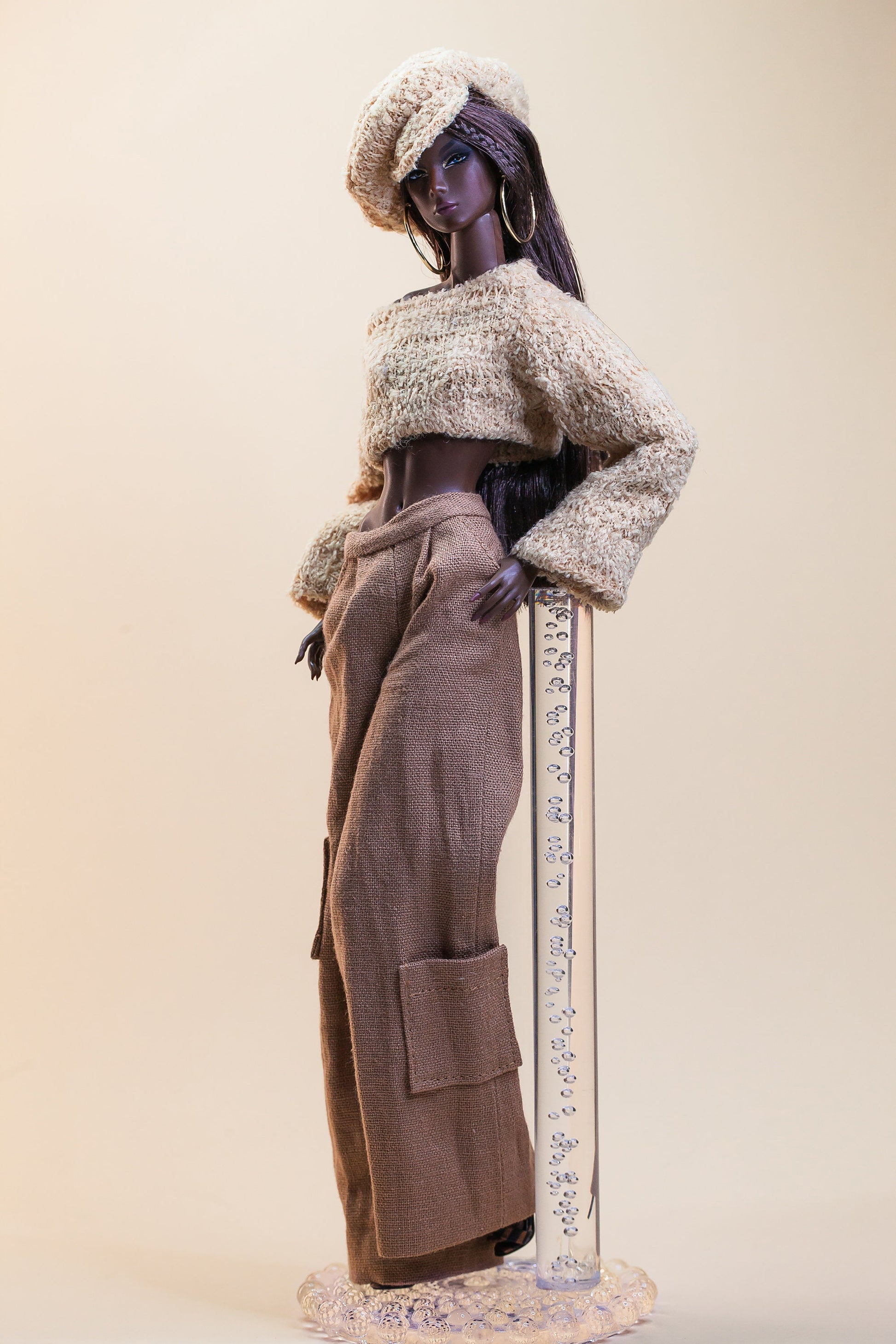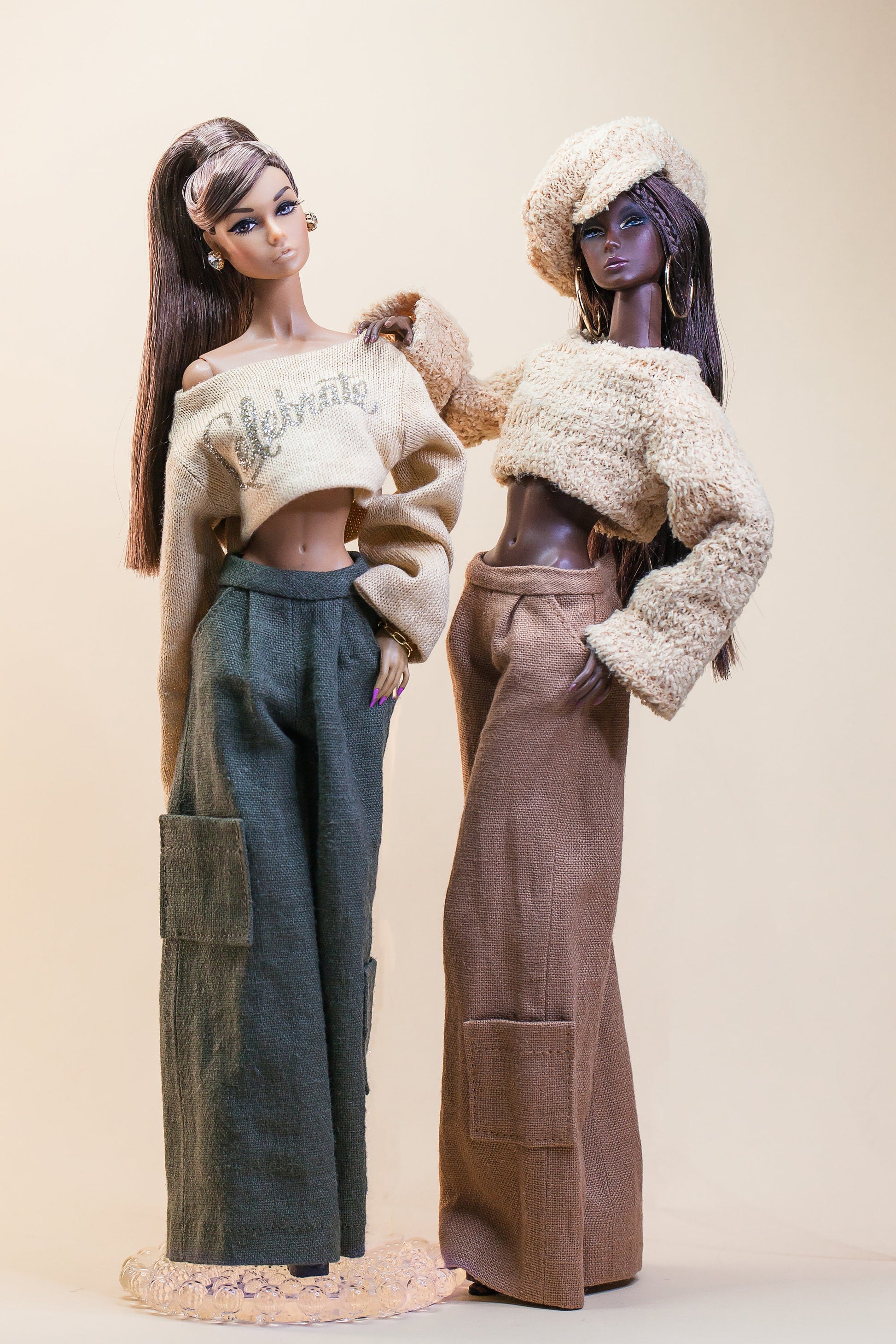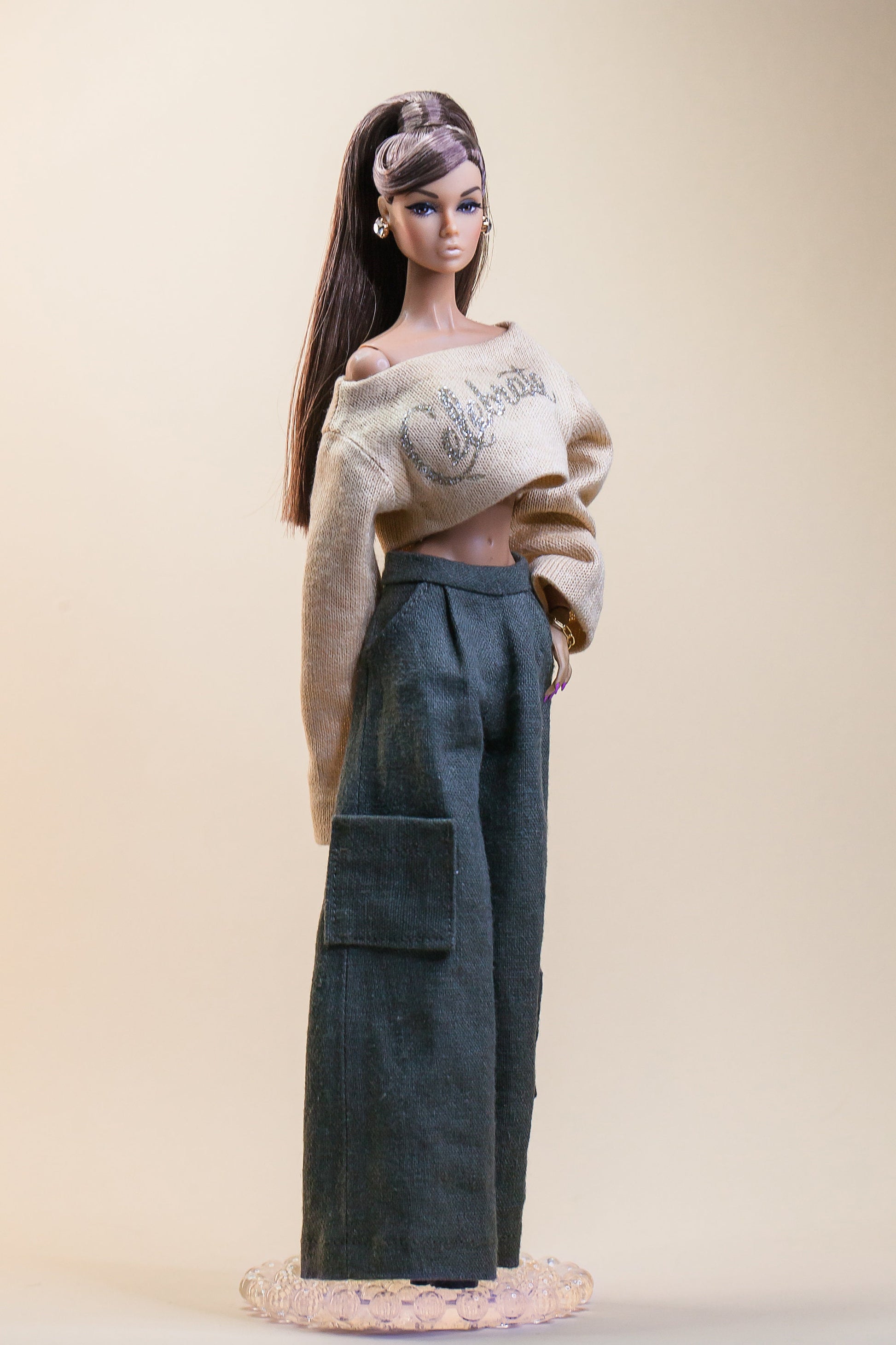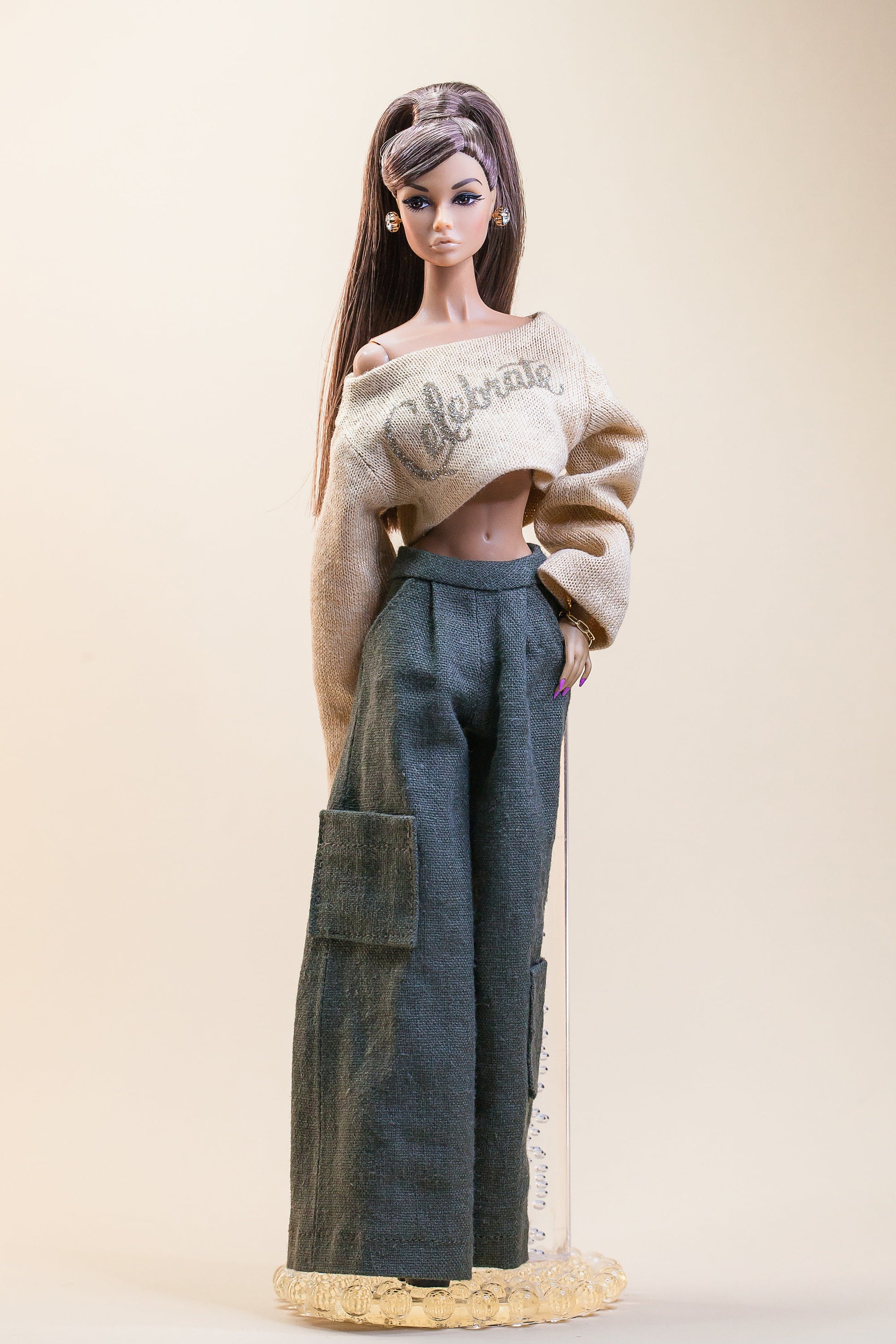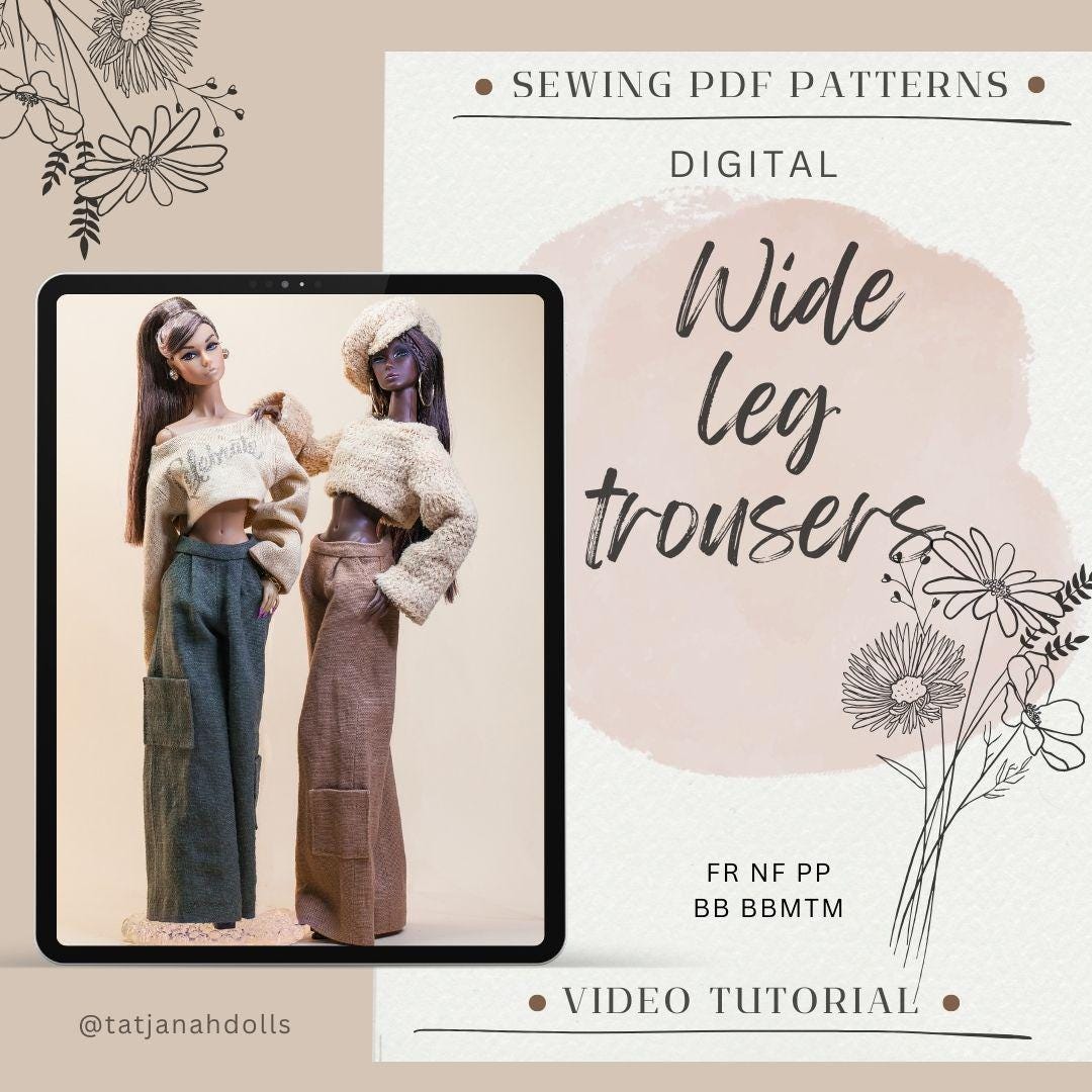 PDF Digital Pattern wide leg trousers for Fashion Royalty Nu Face Integrity toys and BB dolls. VIDEO tutorial.