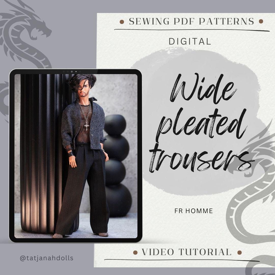 PDF Digital Pattern wide pleated trousers pants for male FR HOMME doll Integrity toys.