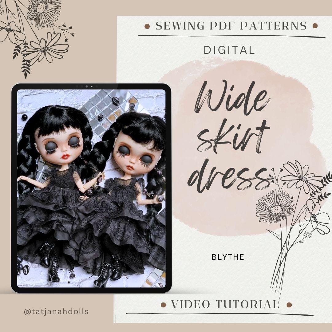 PDF Digital Pattern wide skirt dress für Blythe doll. Youtube VIDEO.