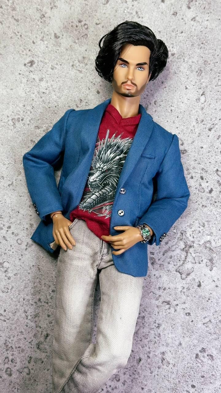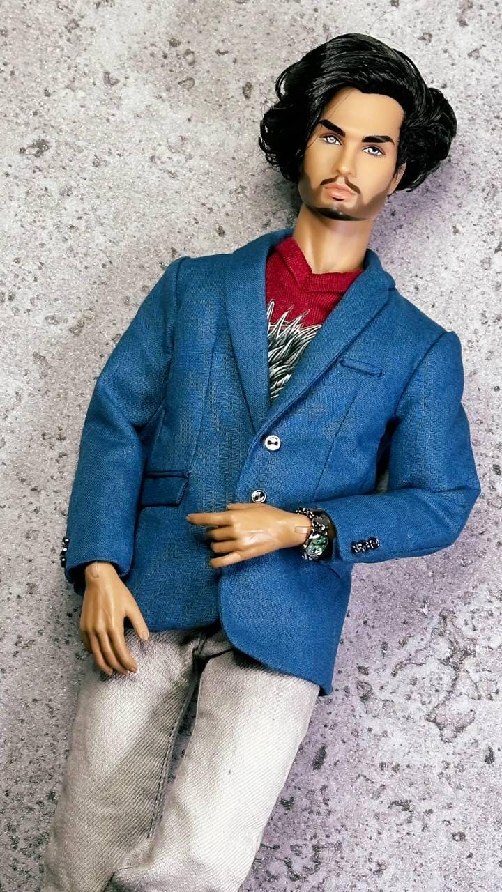 Dieses handgefertigte blaue Jacket verleiht männlichen 1/6 Sammlerpuppen einen modernen und zugleich eleganten Look. Perfekt für Fashion Royalty Homme und andere hochwertige Sammelpuppen, ist dieses Jacket ein Must-Have für stilvolle Auftritte.
